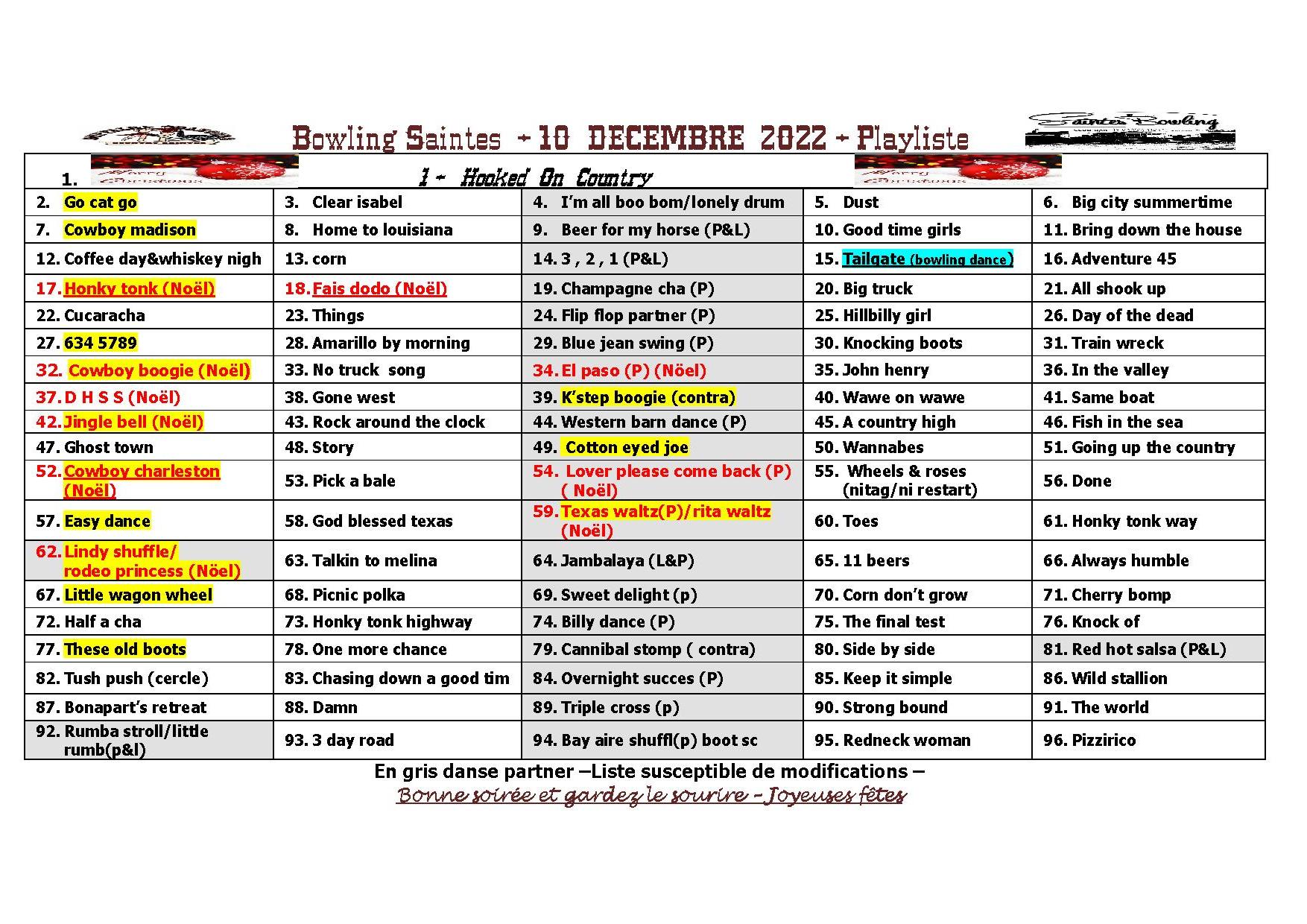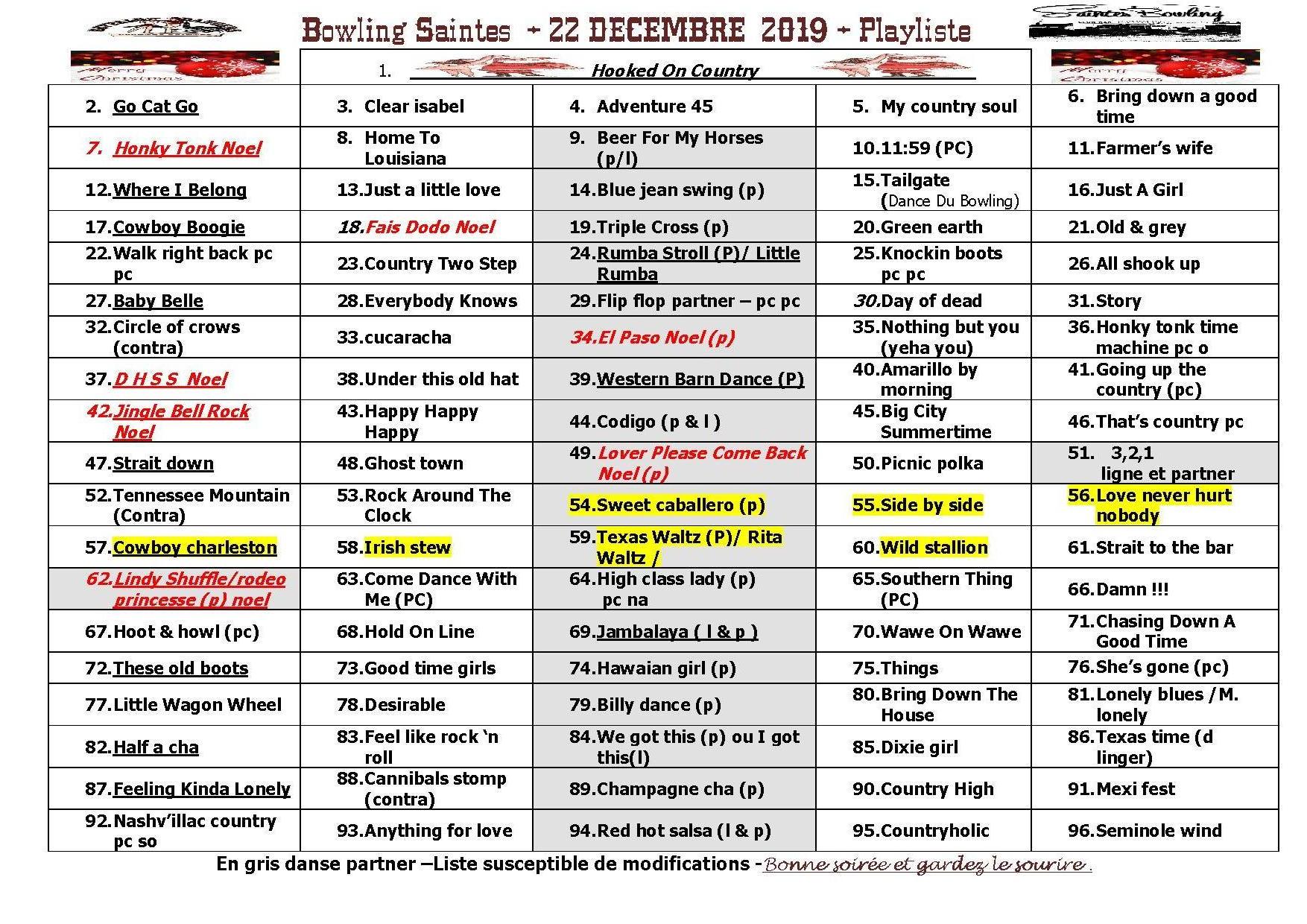 –Info du 19 Décembre 2019 – playliste pour le bal country de noel du 22 12 2019 au bowling de Saintes (version Pdf dans l’onglet affiche et playliste)