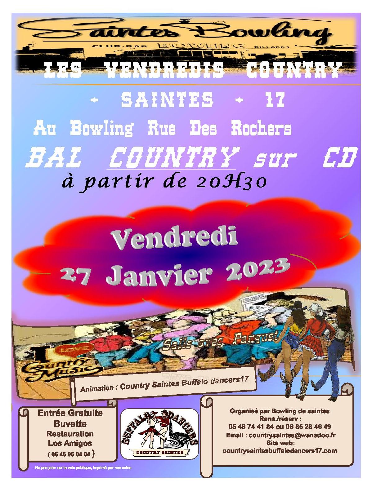 – Affiche de notre 1er vendredi country au bowling de saintes le 27 janvier 2023