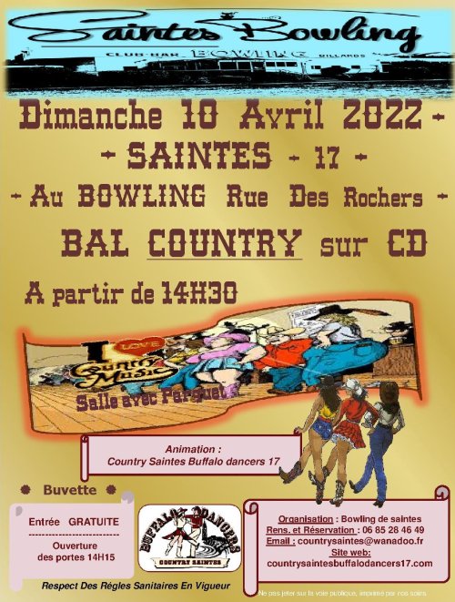 –Info du 26 mars 2022 – Salut à tous , petit rappel pour notre journée country au bowling de Saintes le 10 Avril 2022.