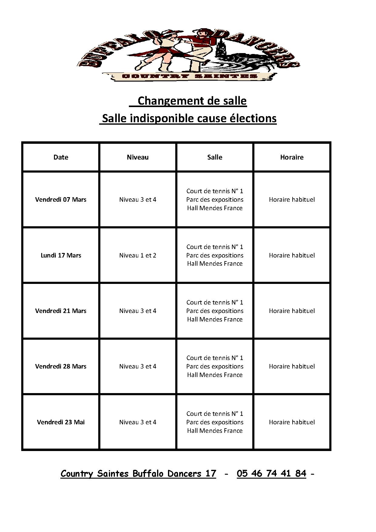 Info du 01 Mars 2014 – Attention nombreux changements de salle par rapport aux elections et réunions publiques , voir tableau ci-joint :