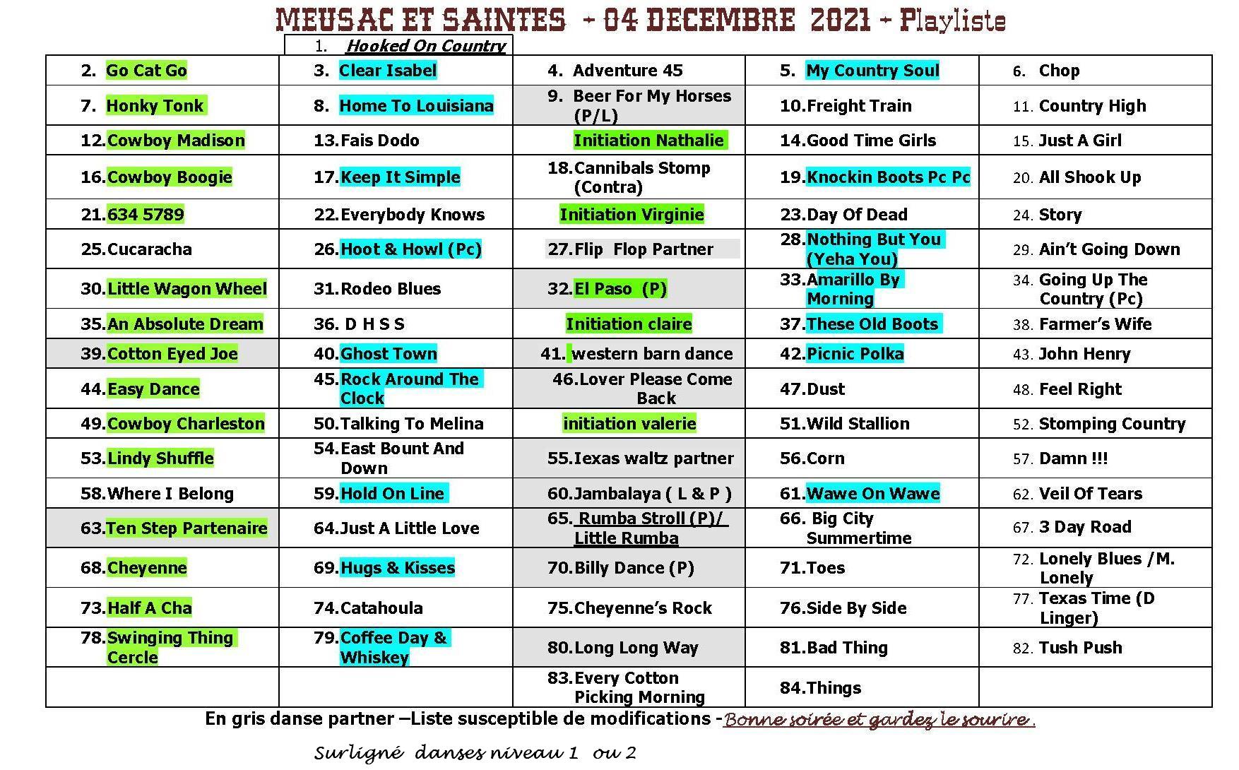 Playlist bal country de Saint augustin du 06 février 2011 - cliquez sur le document pdf