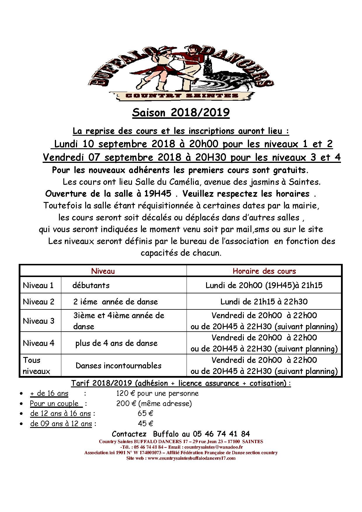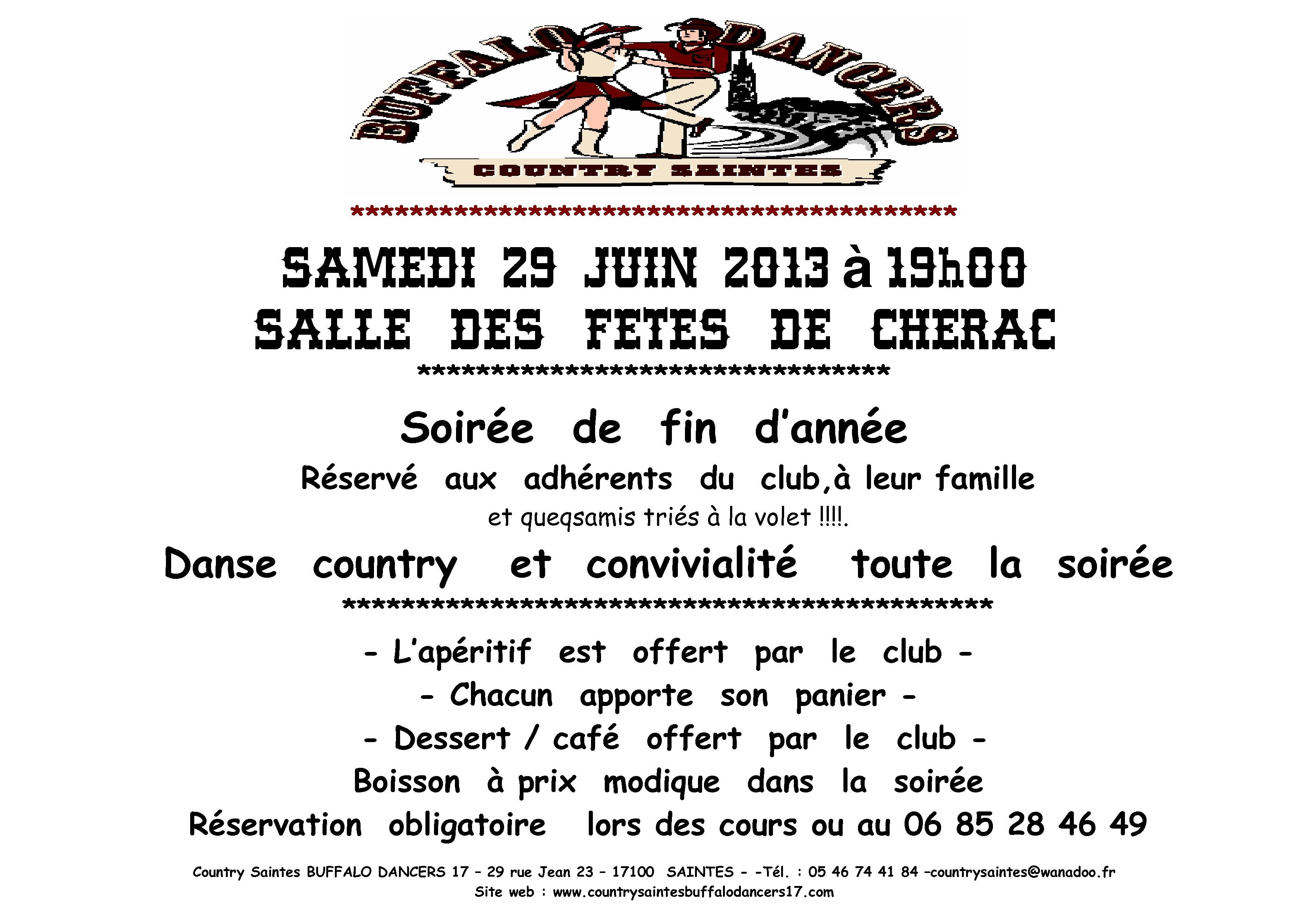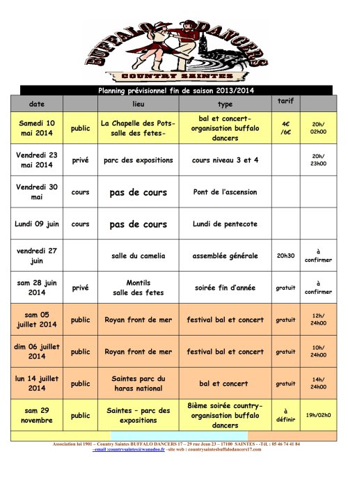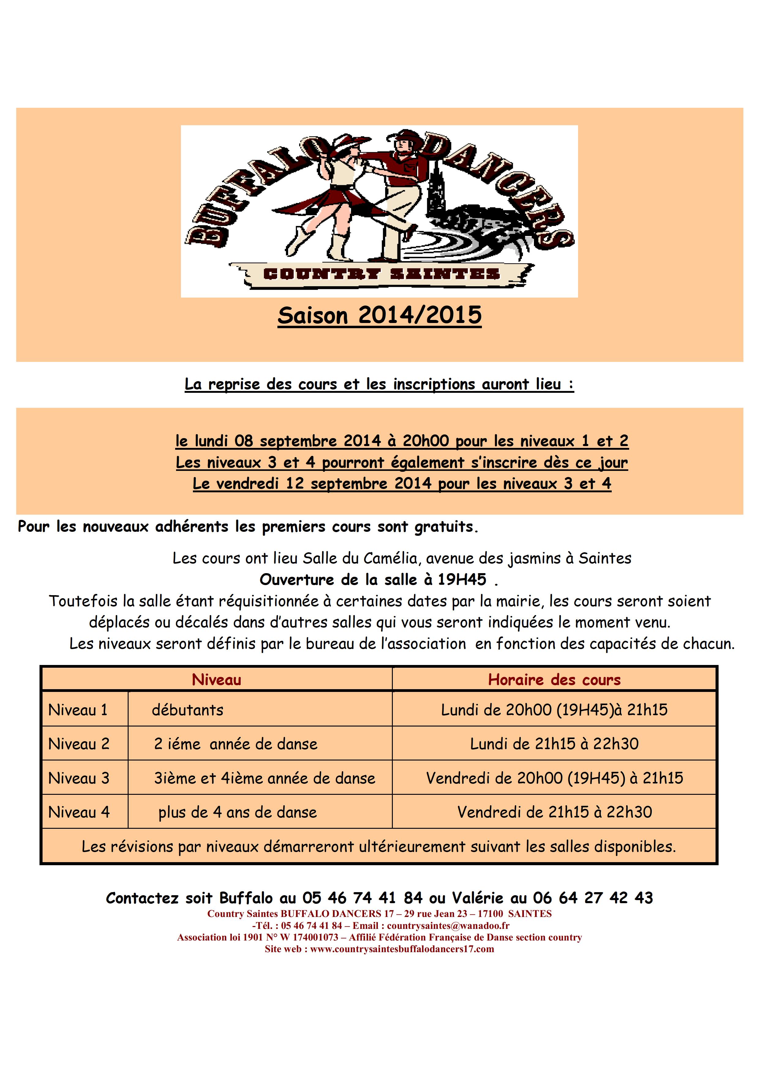 Association loi 1901 – Country Saintes BUFFALO DANCERS 17 – 29 rue Jean 23 – 17100 SAINTES - -Tél. : 05 46 74 41 84 –