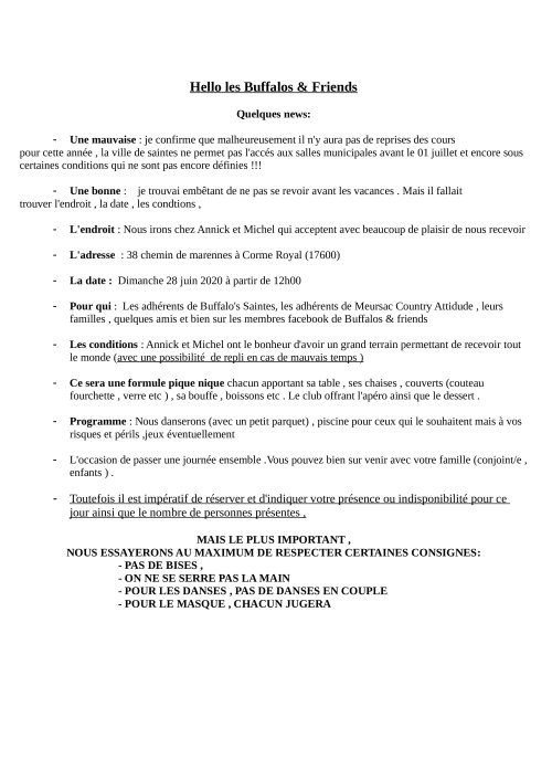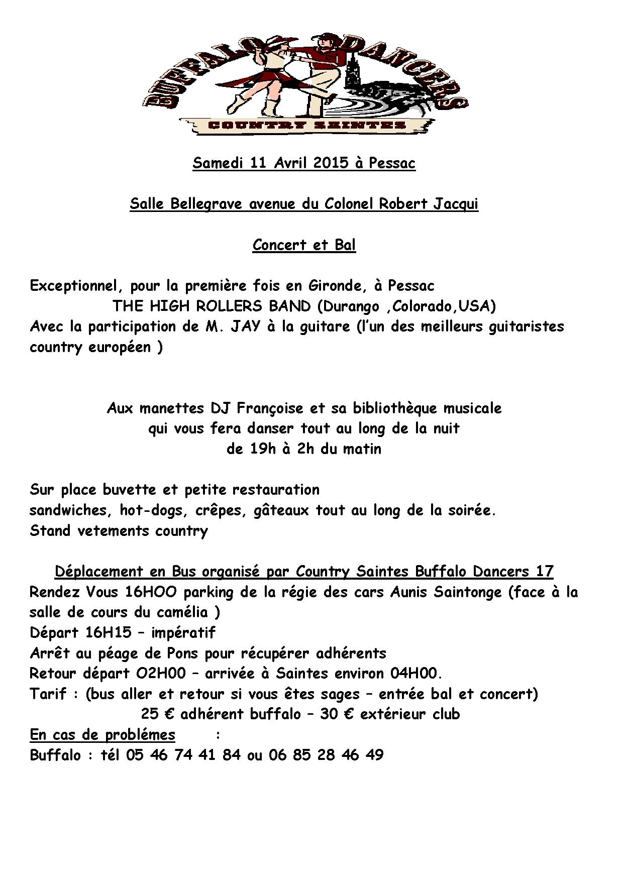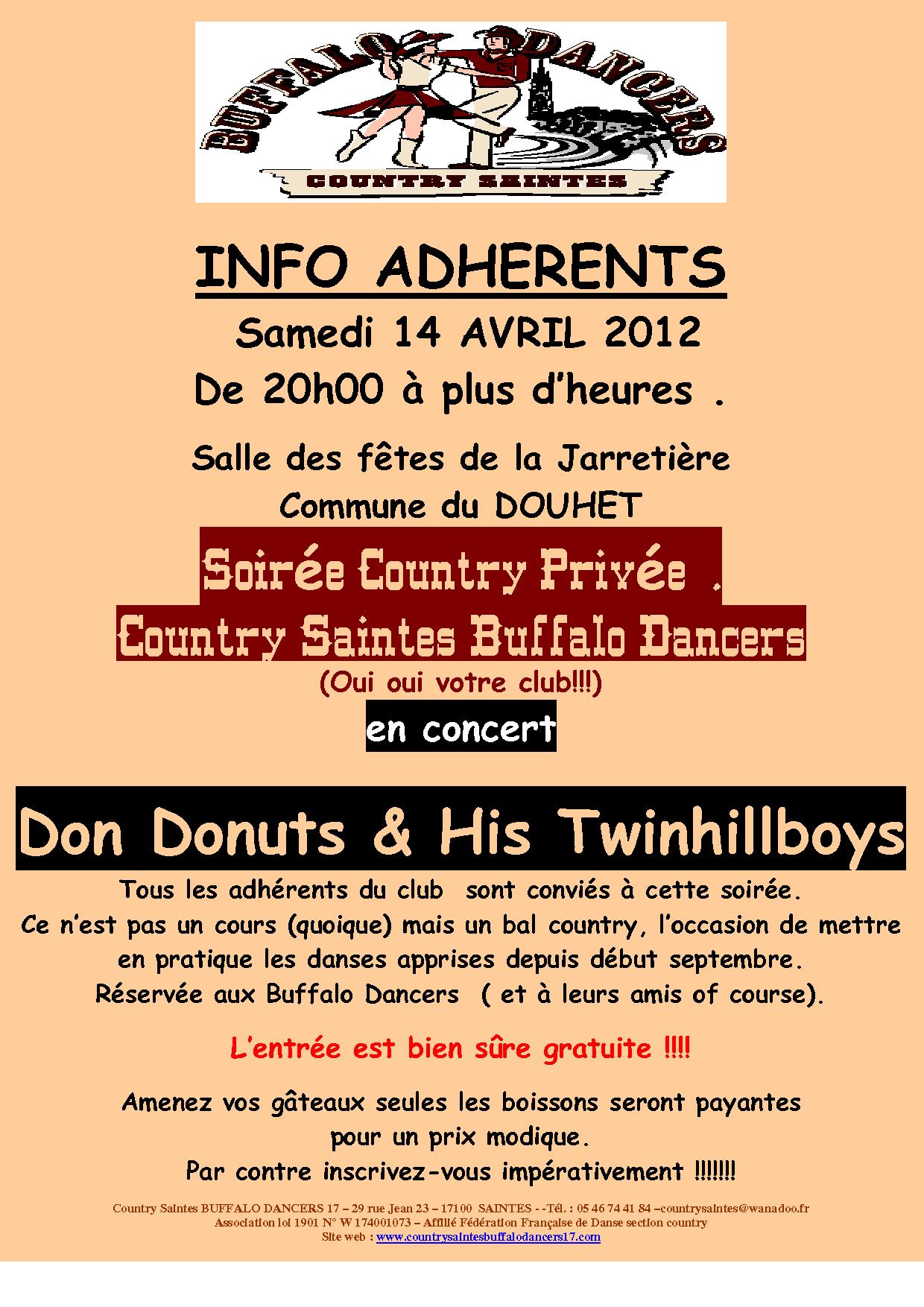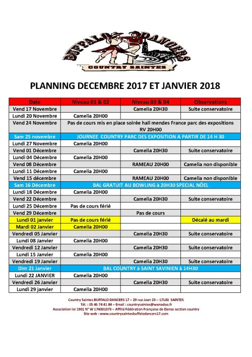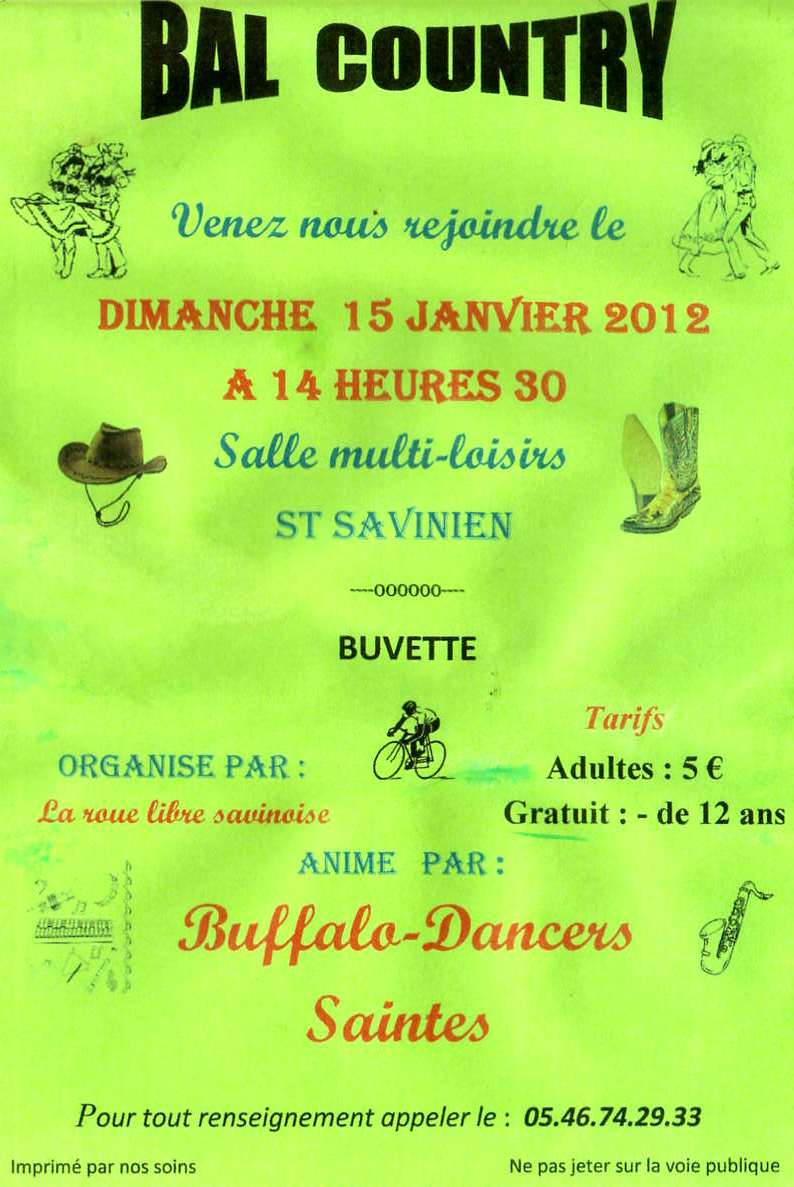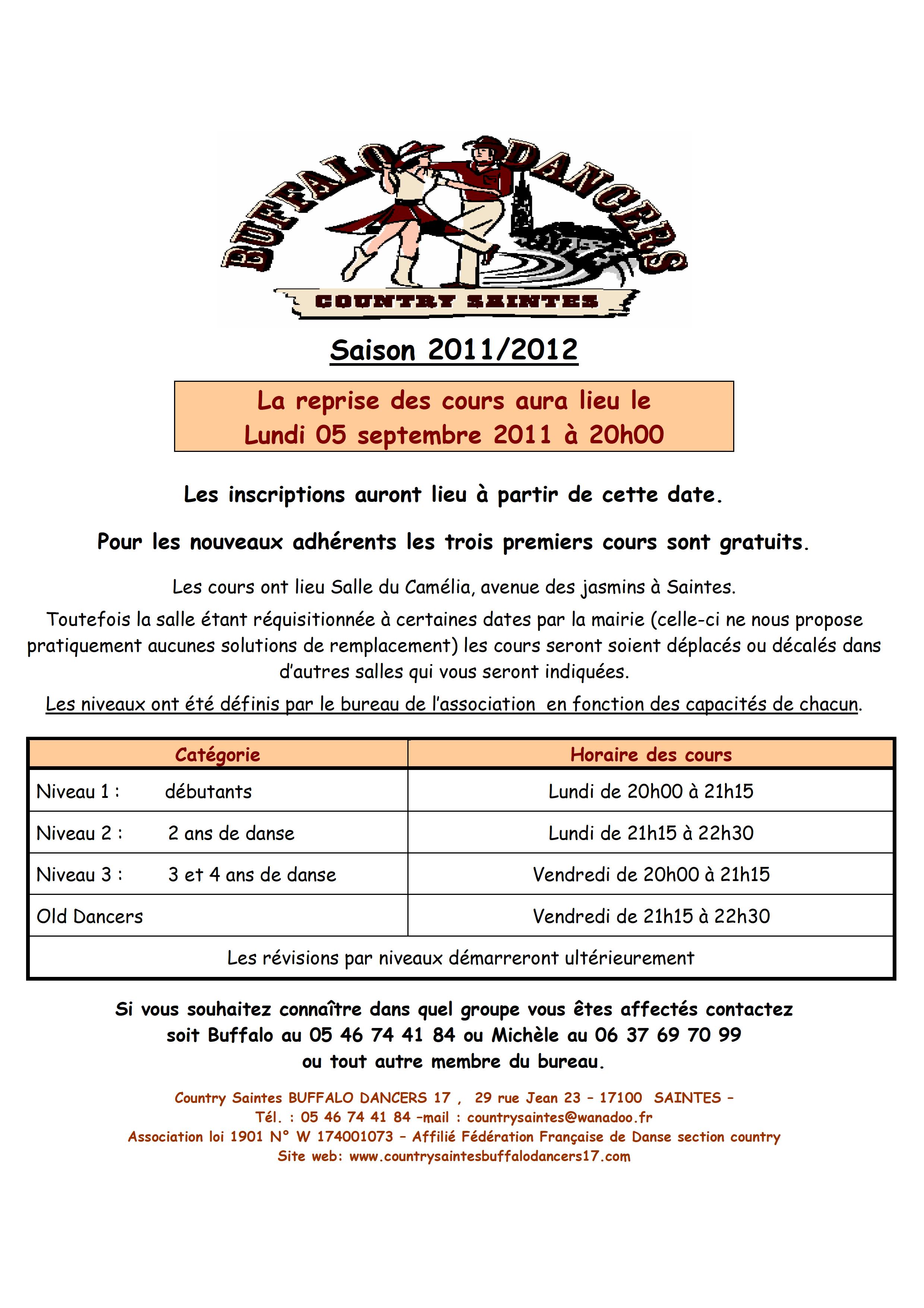 Association loi 1901 – Country Saintes BUFFALO DANCERS 17 – 29 rue Jean 23 – 17100 SAINTES - -Tél. : 05 46 74 41 84 –