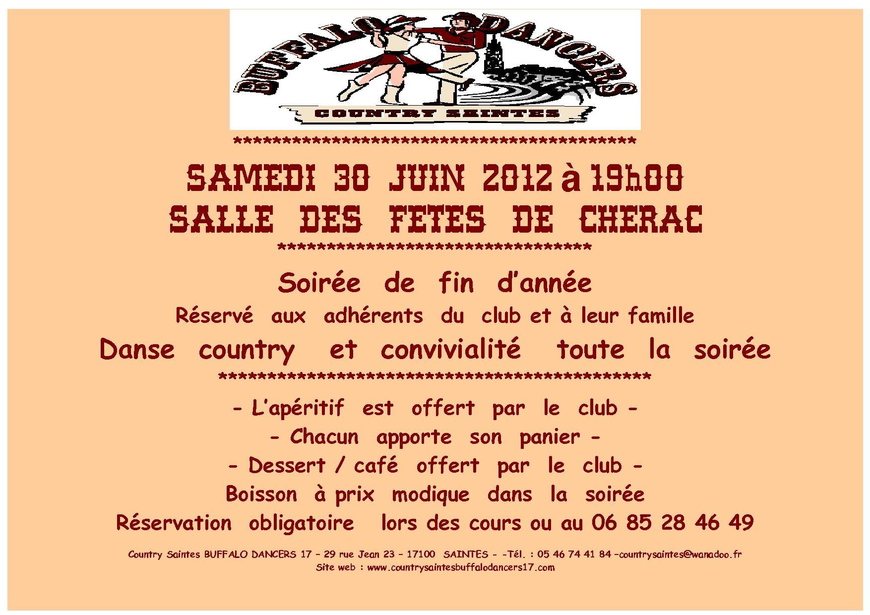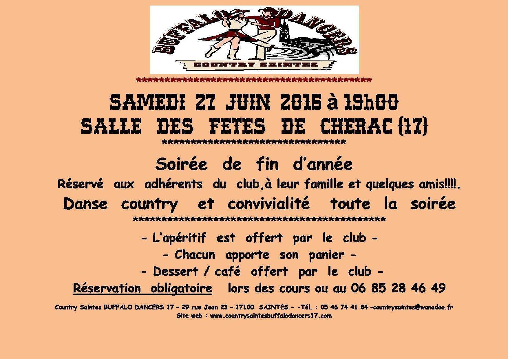 Info du 01 Juin 2015 – Soirée fin d’année à Cherac le samedi 27 Juin . Pensez à vous inscrire.