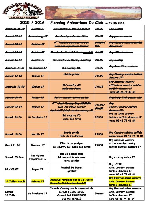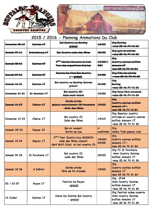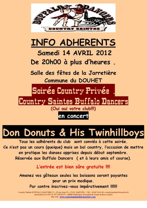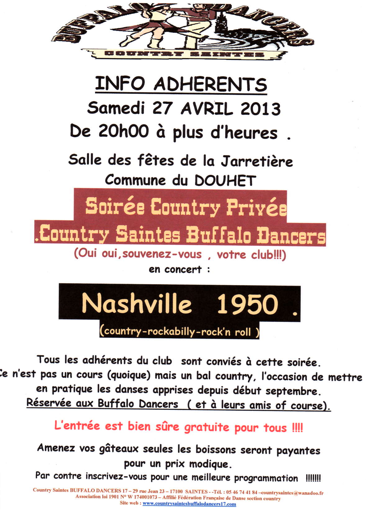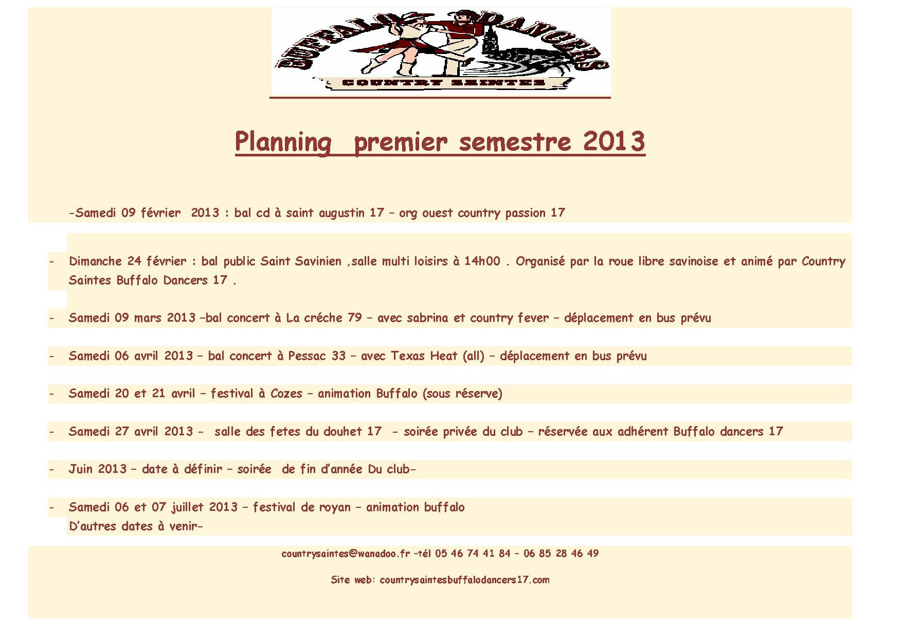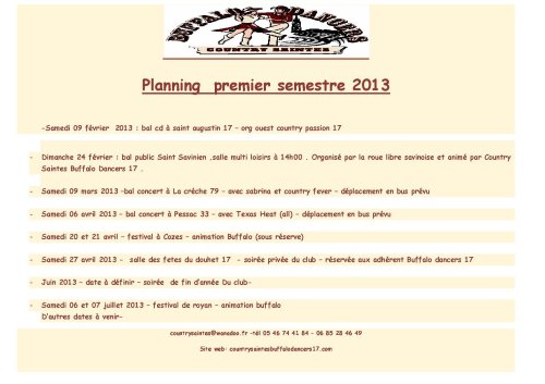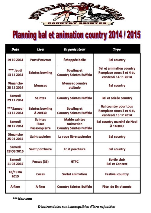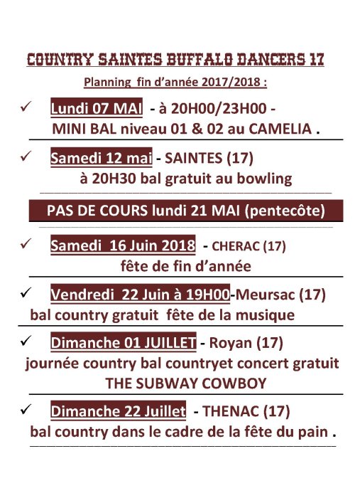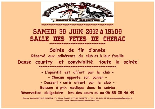countrysaintes@wanadoo.fr .site webb www.countrysaintesbuffalodancers17.com