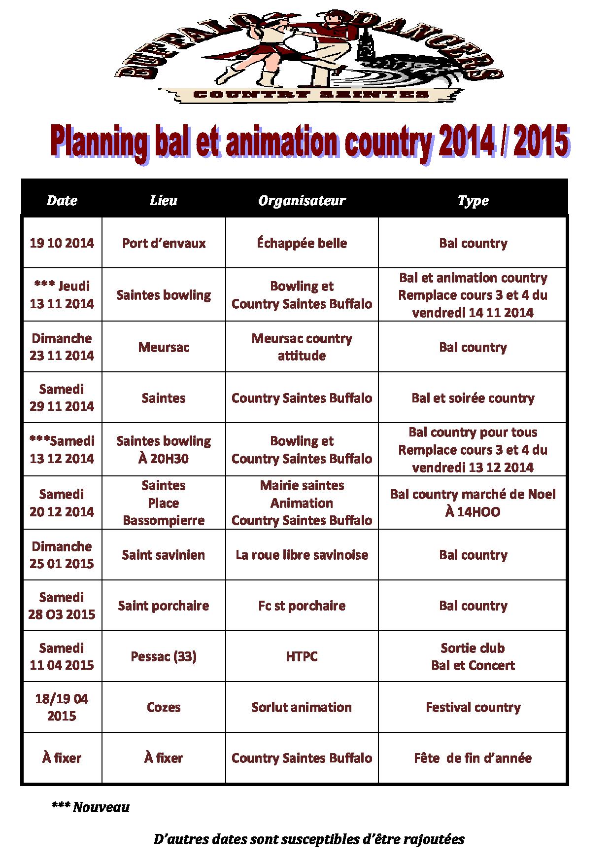 Info du 16 octobre 2014 – Bals et animation 2014-2015 où nous sommes soit organisateur soit animateur-partenaire :