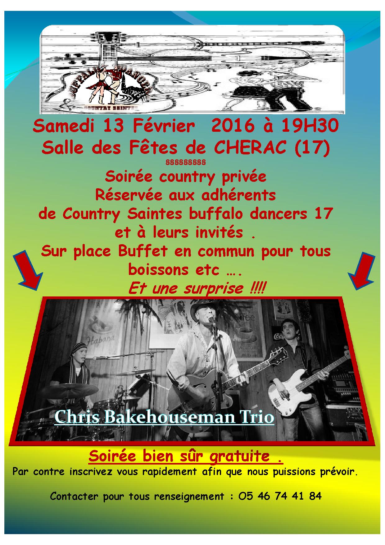 – Soirée du club à Cherac Samedi 13 Février repas bal et concert :
