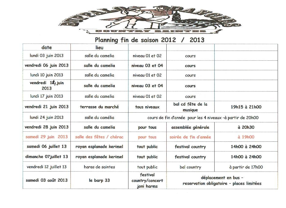 Planning fin de saison du club