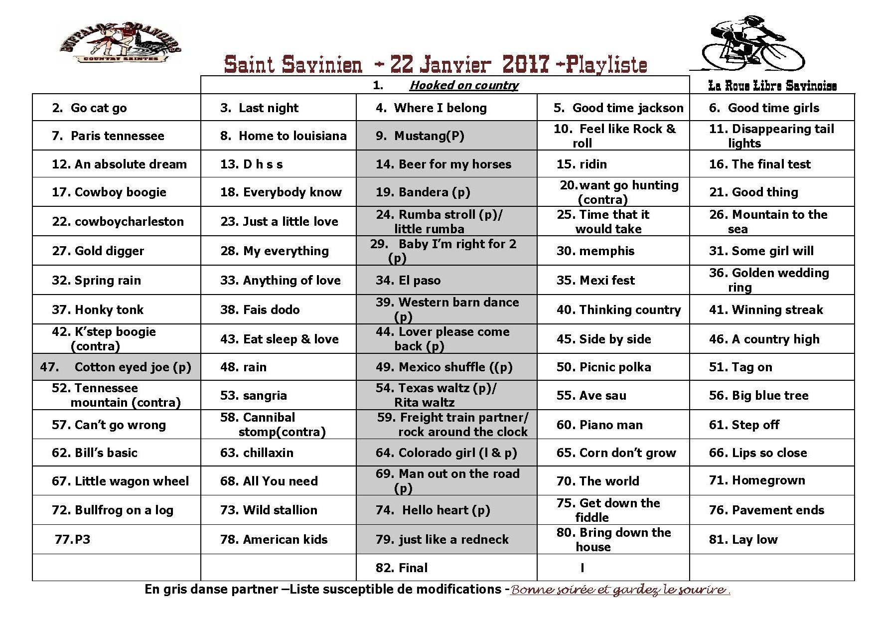 Playlist bal country de Varaize du 19 février 2011 - cliquez sur le document pdf