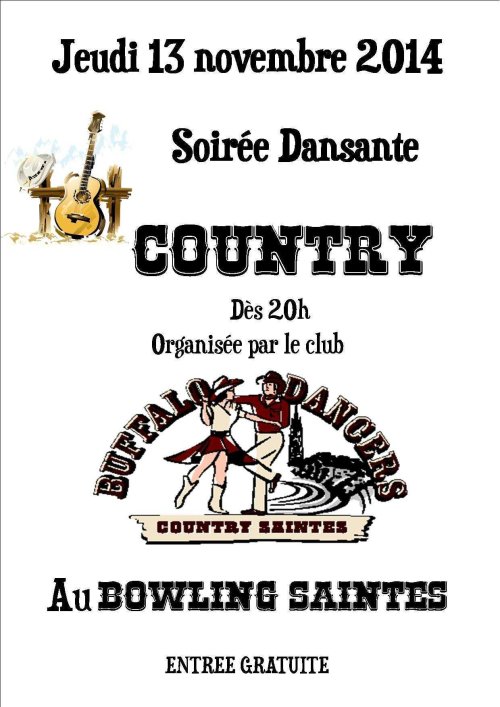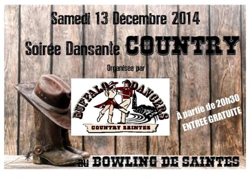 Info du 01 Décembre 2014 – Bal country au bowling de saintes 19 rue des rochers de 20H30 à 02HOO environ