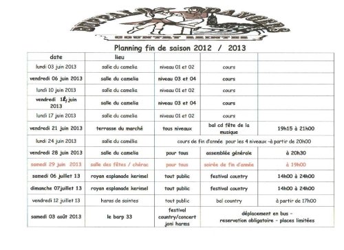 Planning fin de saison Le dernier cours aura lieu le vendredi 18 juin 2010