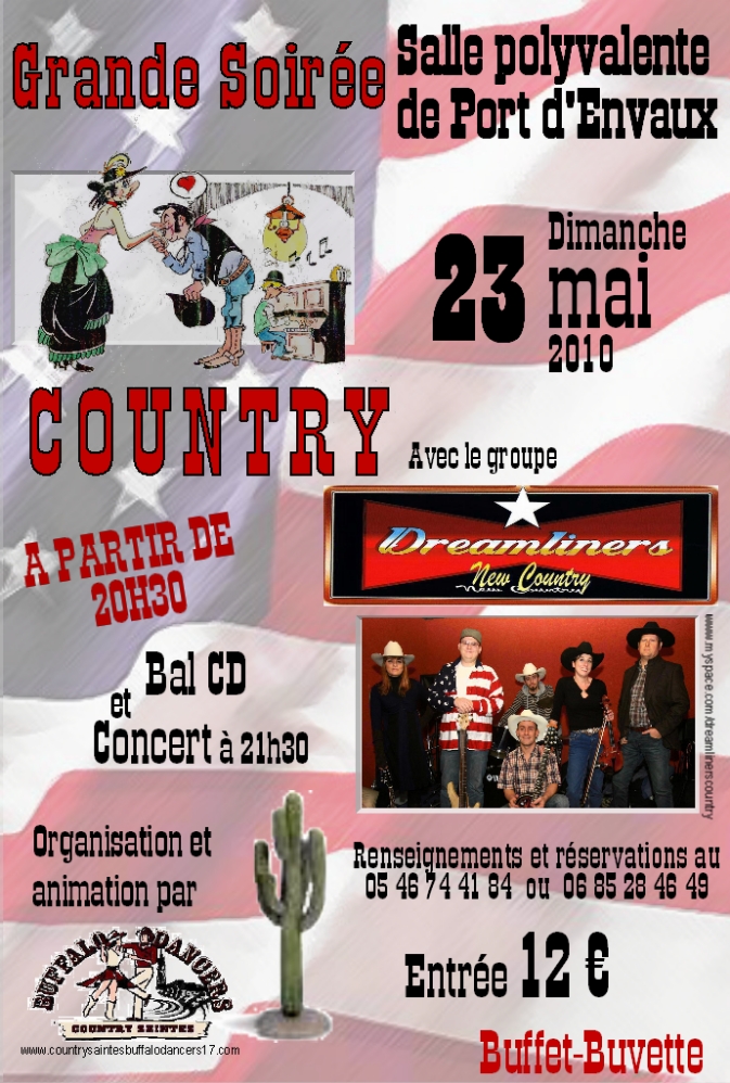 Dimanche 23 mai 2010 -salle polyvalente port d’envaux –Grande soirée country ( concert et bal ) avec orchestre LES DREAMLINERS