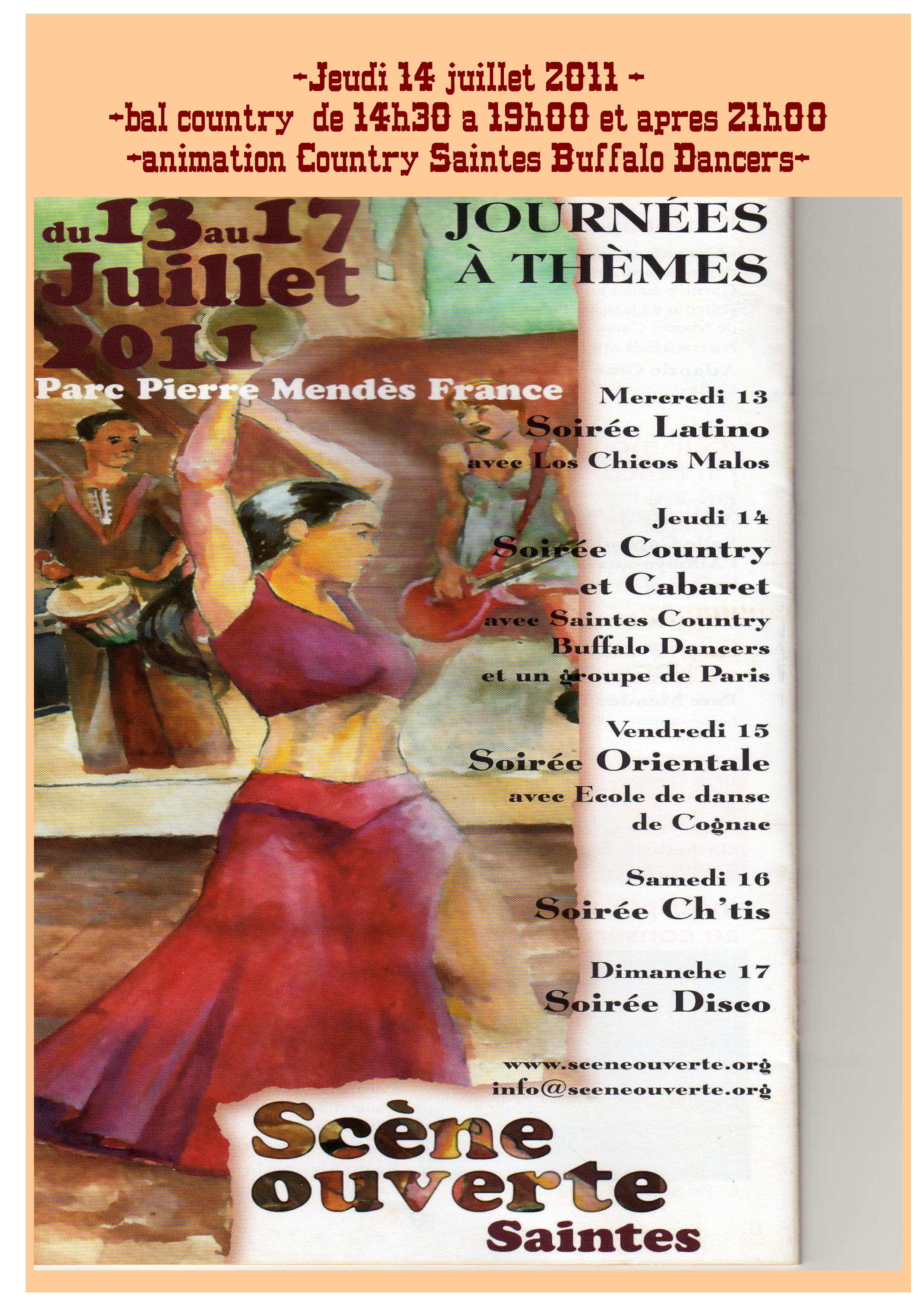 Article regroupant les documents (affiches, bulletins d’inscription, ...) du club “Country Saintes Buffalo Dancers 17” pour diffuser les programmes des soirées organisées localement.
